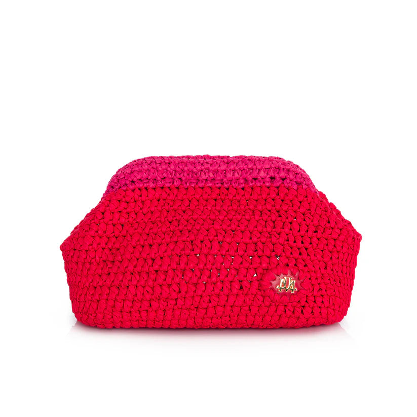 pink red color raffia clutch bag