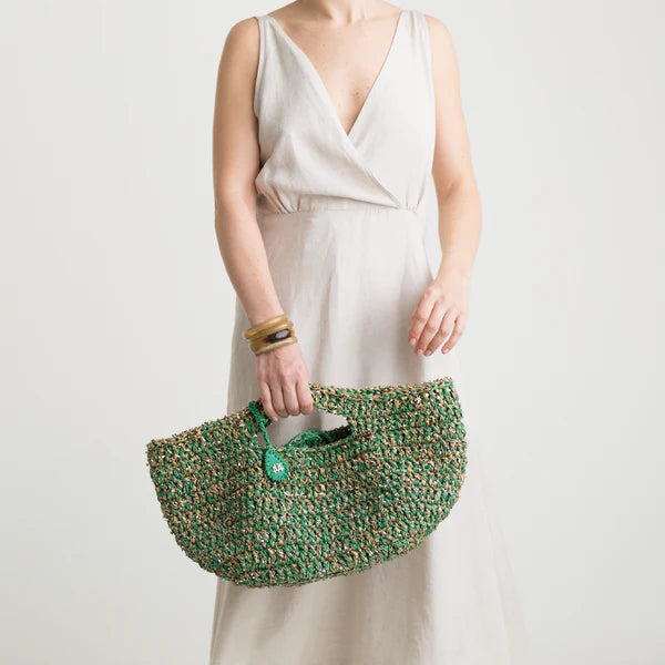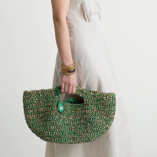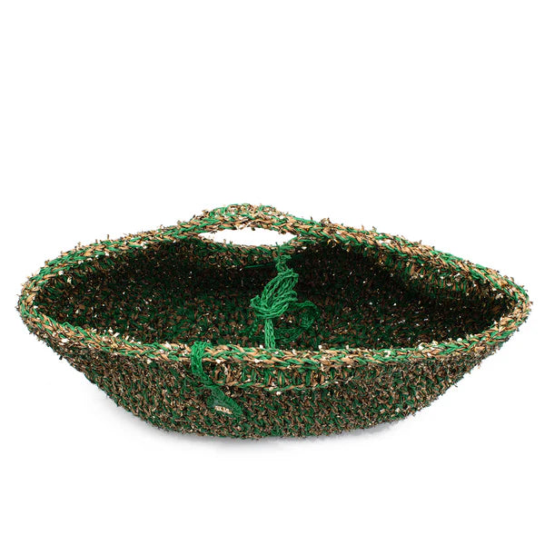 Classic green color raffia with gold confetti details basket bag