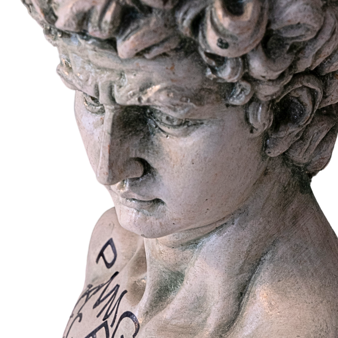 Kelimelerin tükendiği yerde başlayan bir ifade dili. Minimalist duruşunun ardında ironik bir başkaldırı var. Yüzeyde sade, derinde dolu; bu heykel anlatmak istemediğimizi yansıtır.