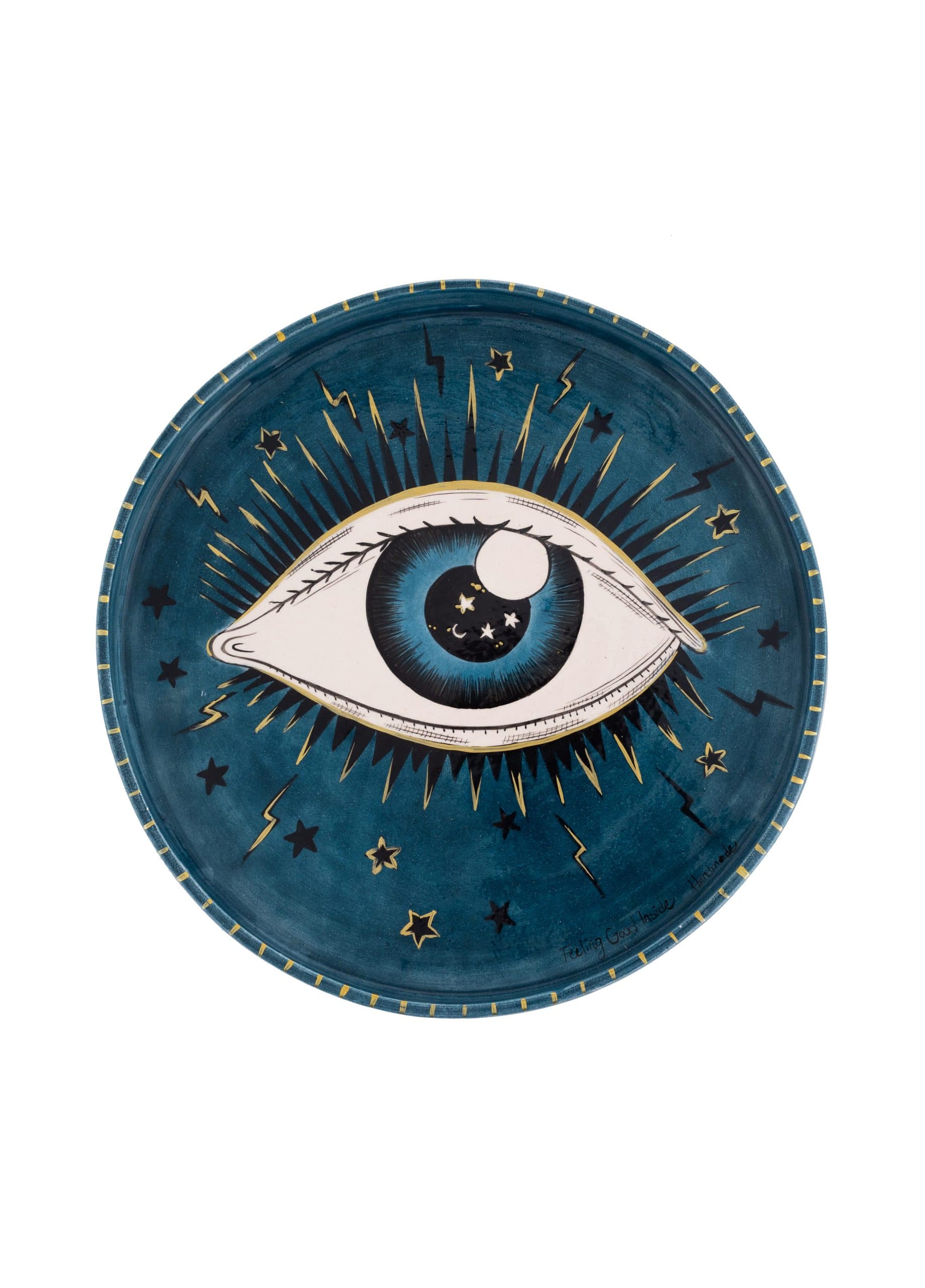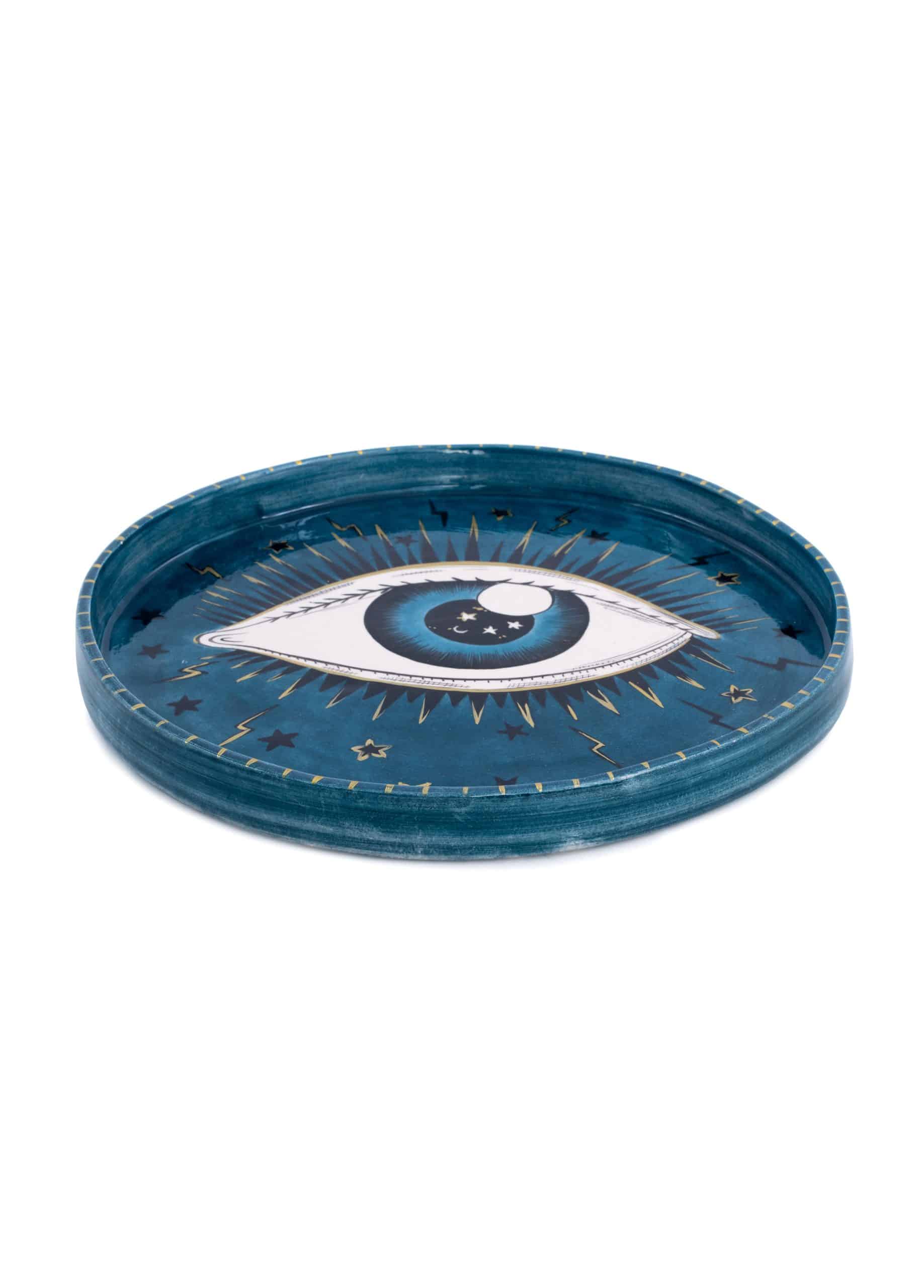 A handmade round ceramic tray from the Inner Eye collection, crafted by local artisans with Mediterranean artistry.