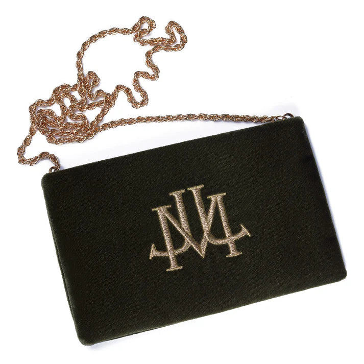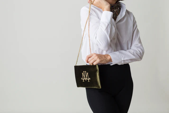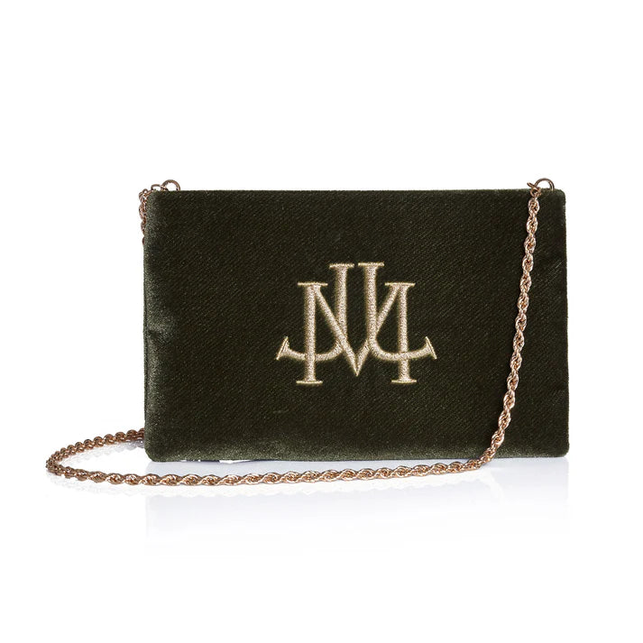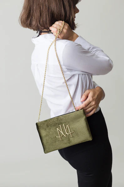 Green color velvet snap closure crossbody bag