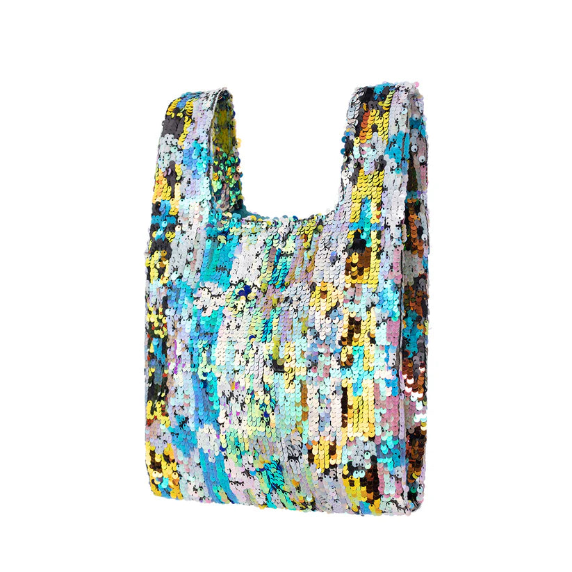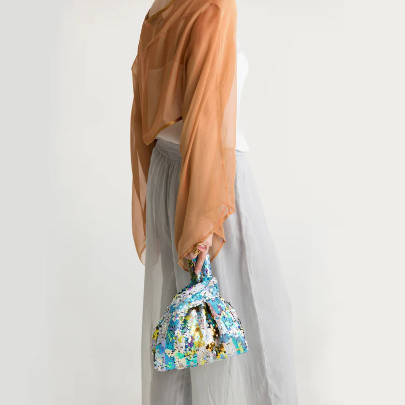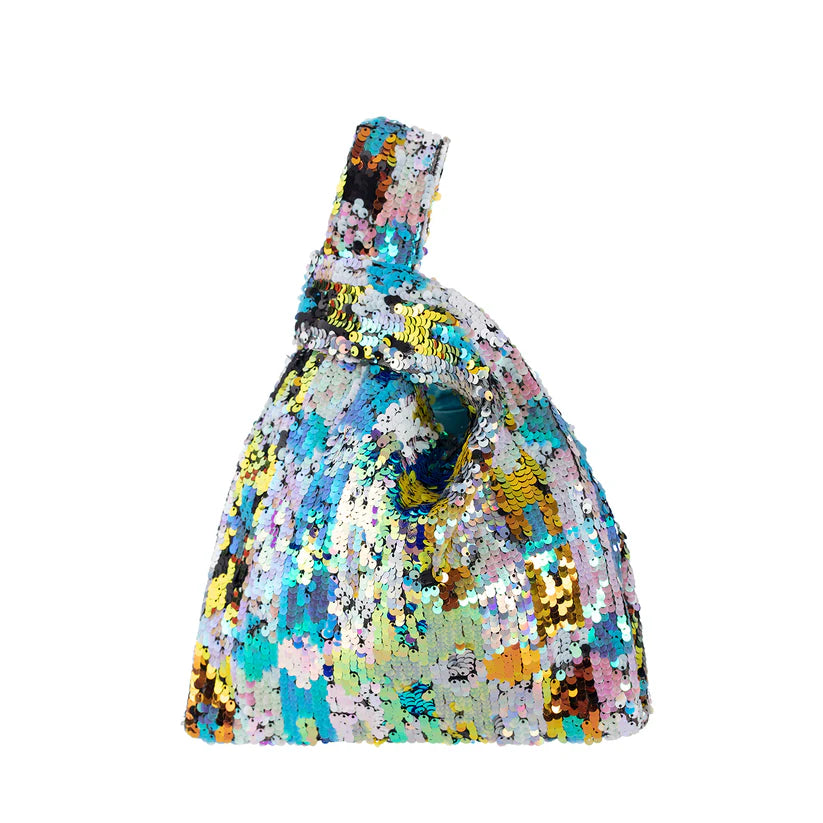 Multi-color plaid sequined knot bag