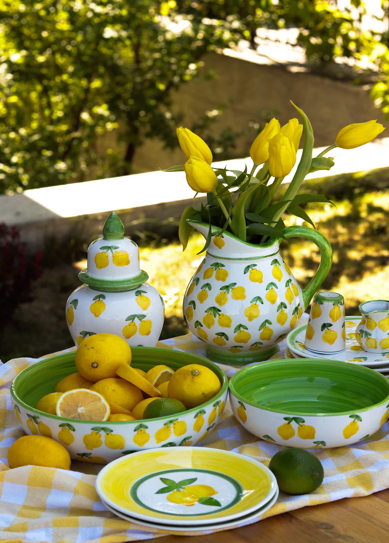 Handmade ceramic carafe in a classic form, part of the Lemon Splash collection — designed for serving water, wine, or refreshing citrus drinks.