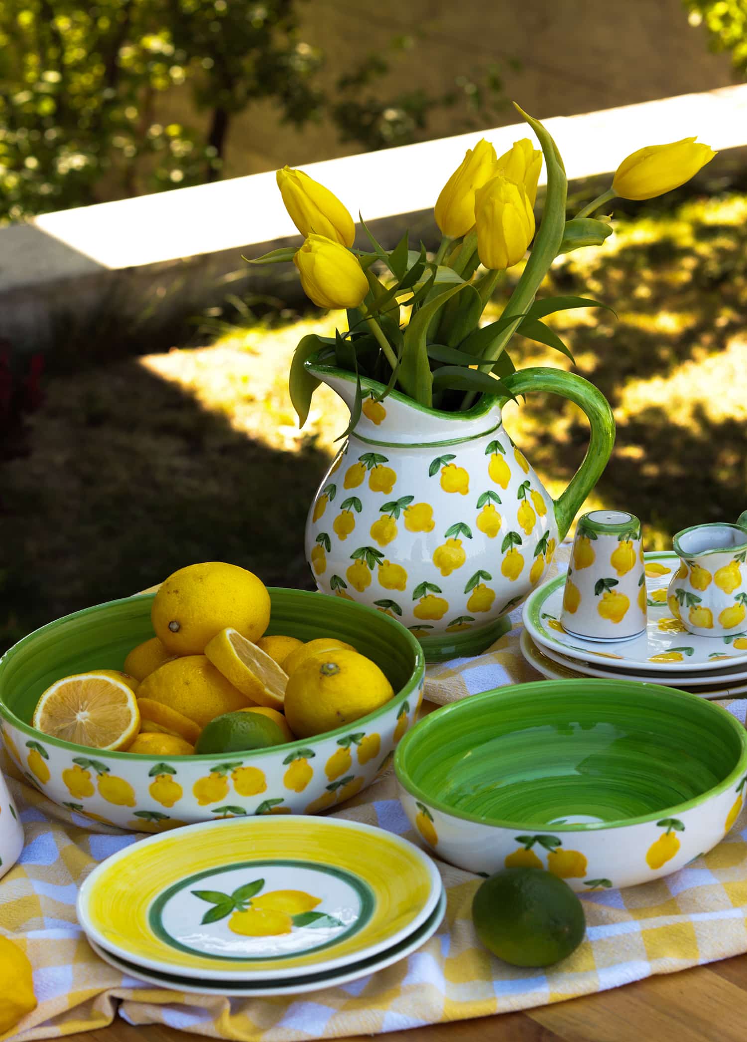 Handmade ceramic cake plate in bright yellow, part of the Lemon Splash collection — perfect for desserts and joyful table moments.