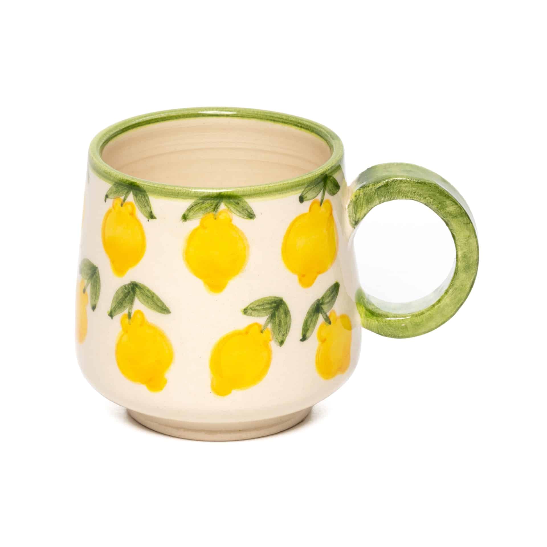 A hand-painted ceramic mug from the Lemon Splash collection, designed with fresh citrus-inspired details.