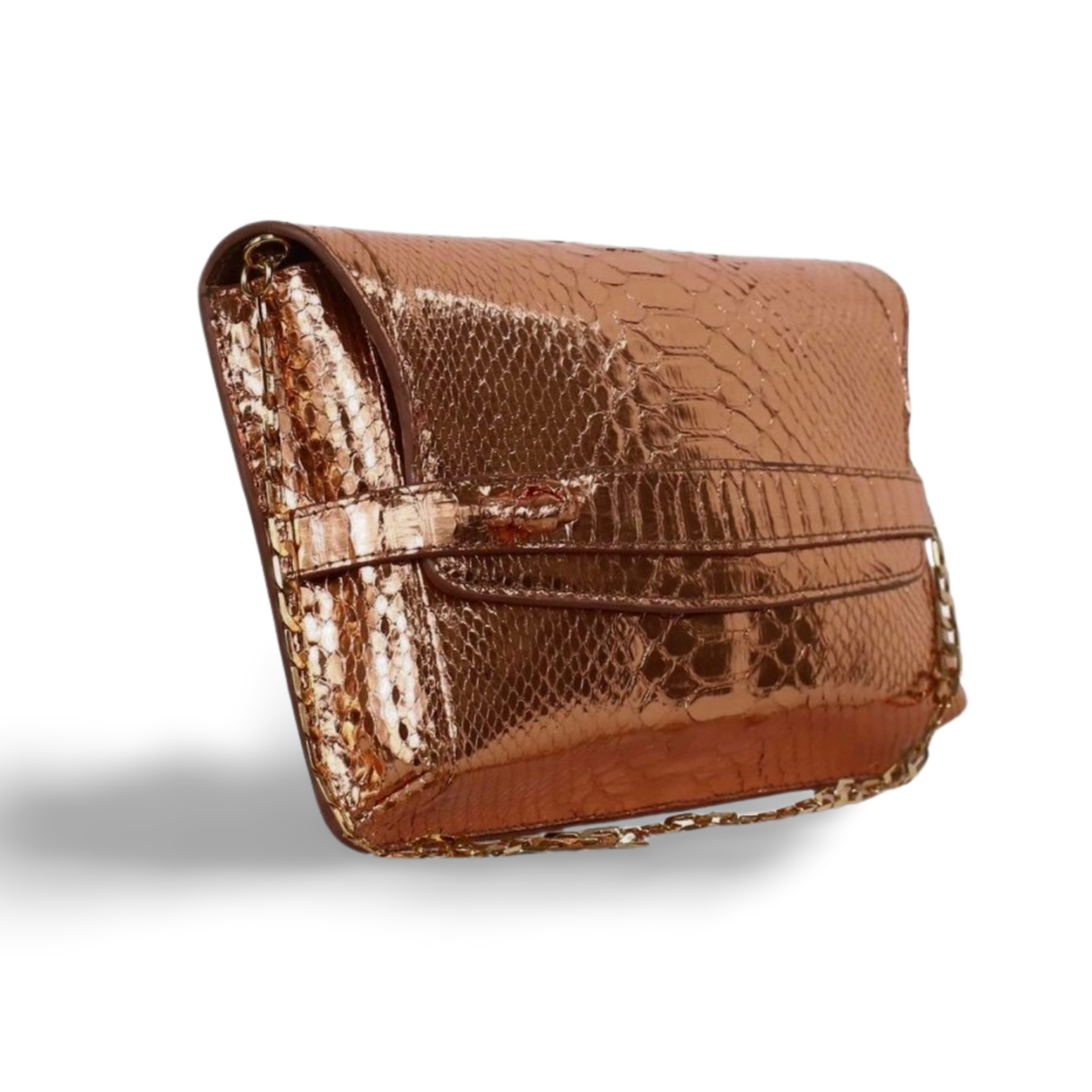 Born of certified Italian python leather, Metropolis is urban poise embodied. Unique, luxurious, and fearless in its proportions.