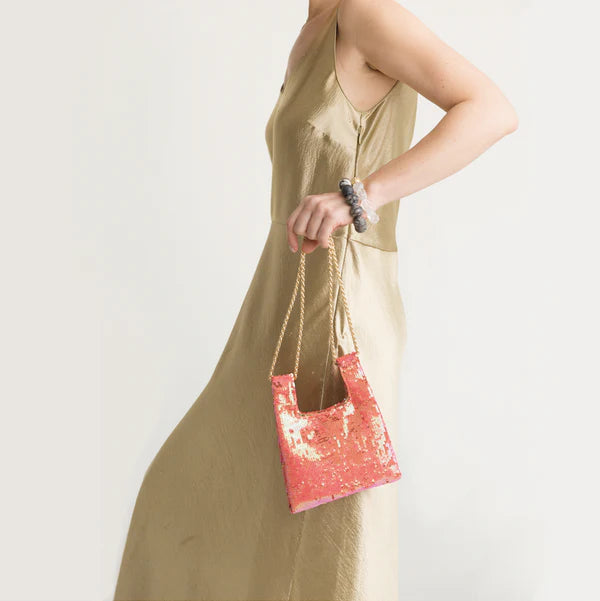 Blush color sequined micro knot bag