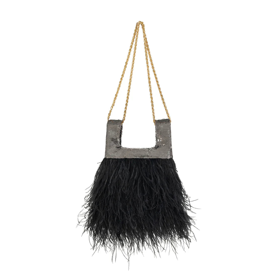 100% viscose, 100% ostrich feather - 17cm W x 21cm H