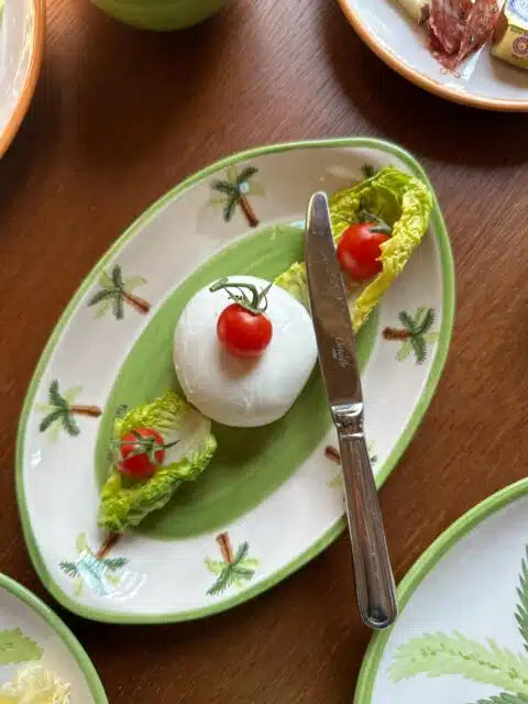 A hand-painted oval plate crafted in Palm Beach tones, blending coastal charm with everyday function.