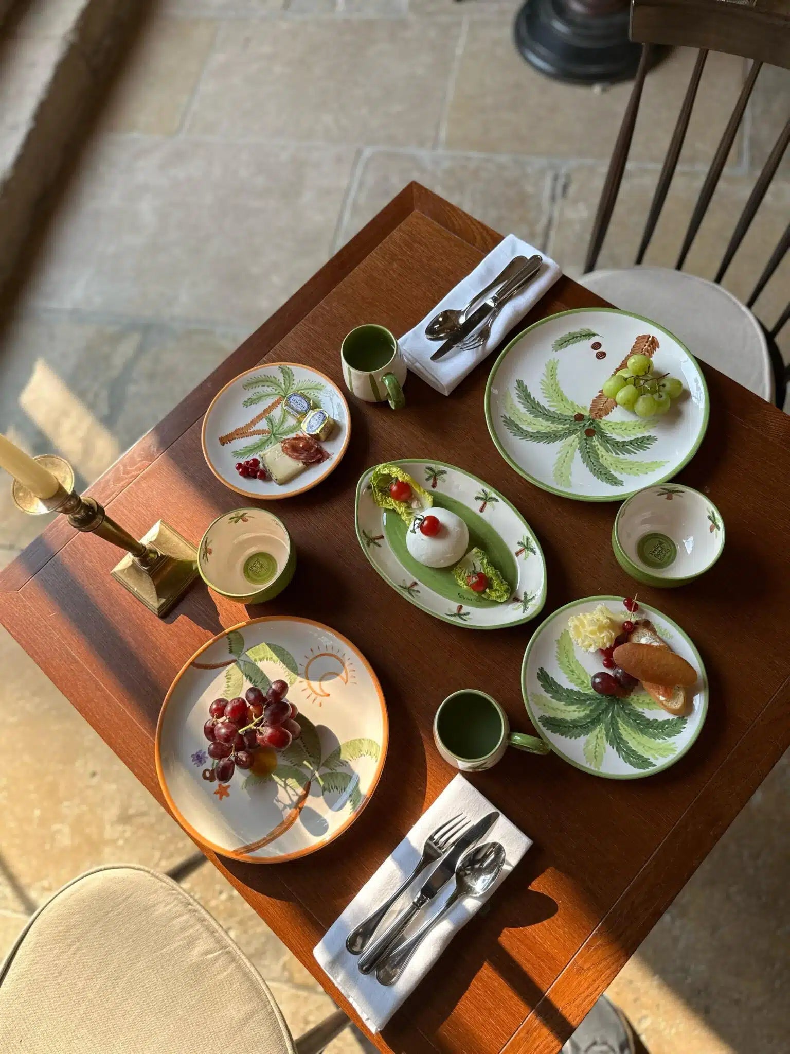 Hand-painted with a bright orange handle, this ceramic mug captures the playful spirit of Palm Beach mornings.