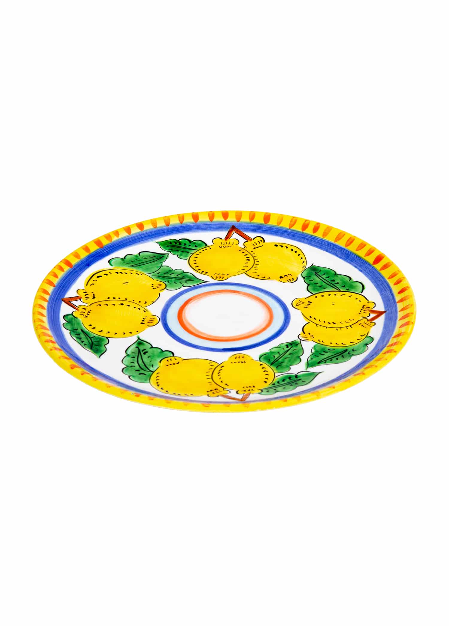 A handmade dinner plate from the Sicilian Lemon collection, crafted by local artisans.