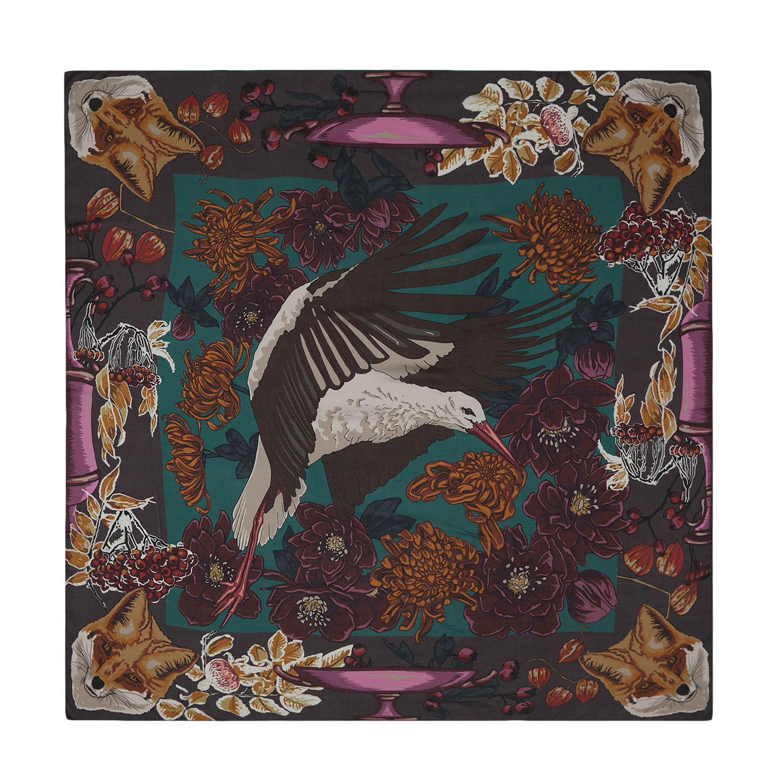 Inspired by La Fontaine’s fables, “the fox and the stork” reflects kindness, respect, and the truth that our actions return to us. Hand-rolled edges; delivered in a 100% cotton pouch.