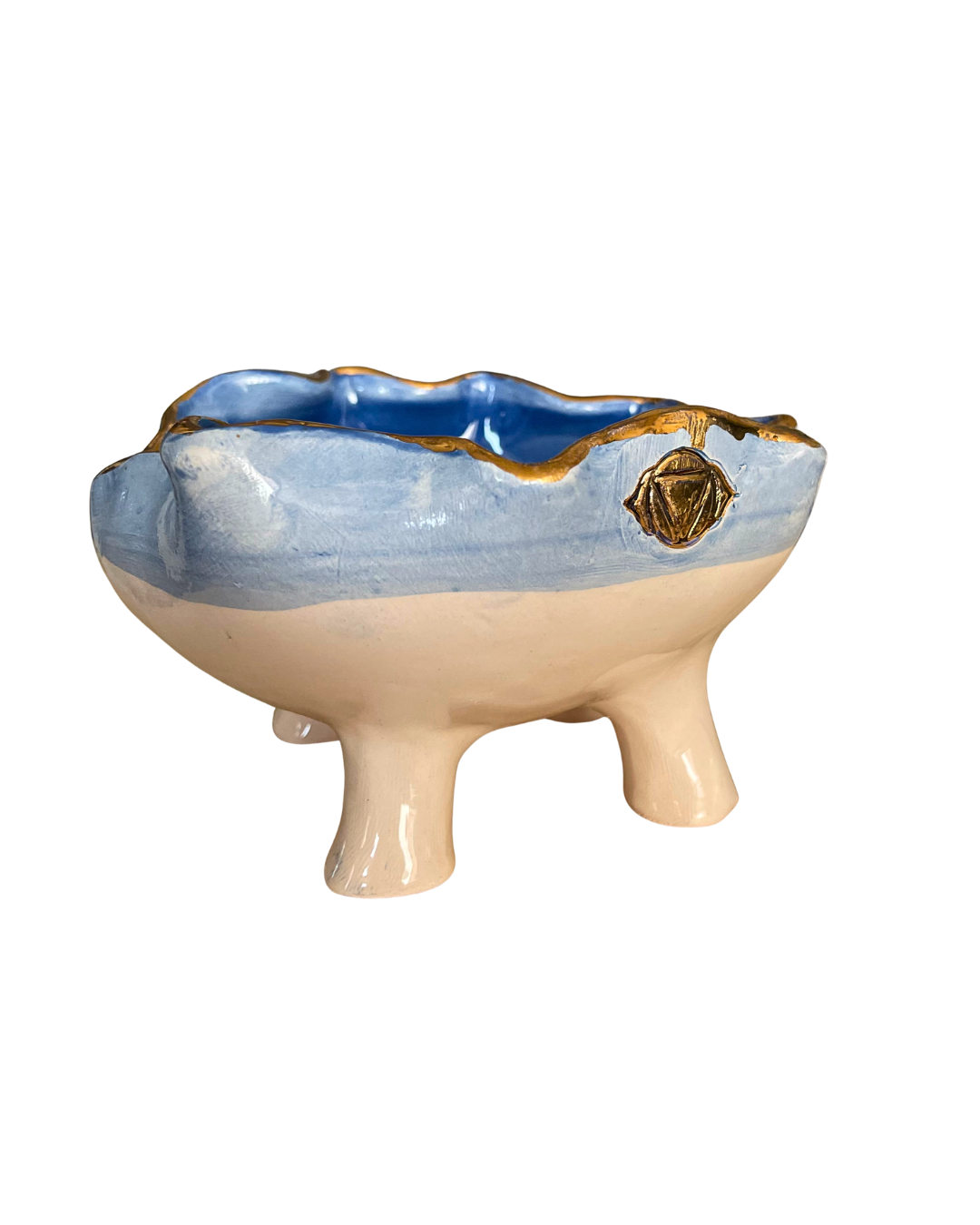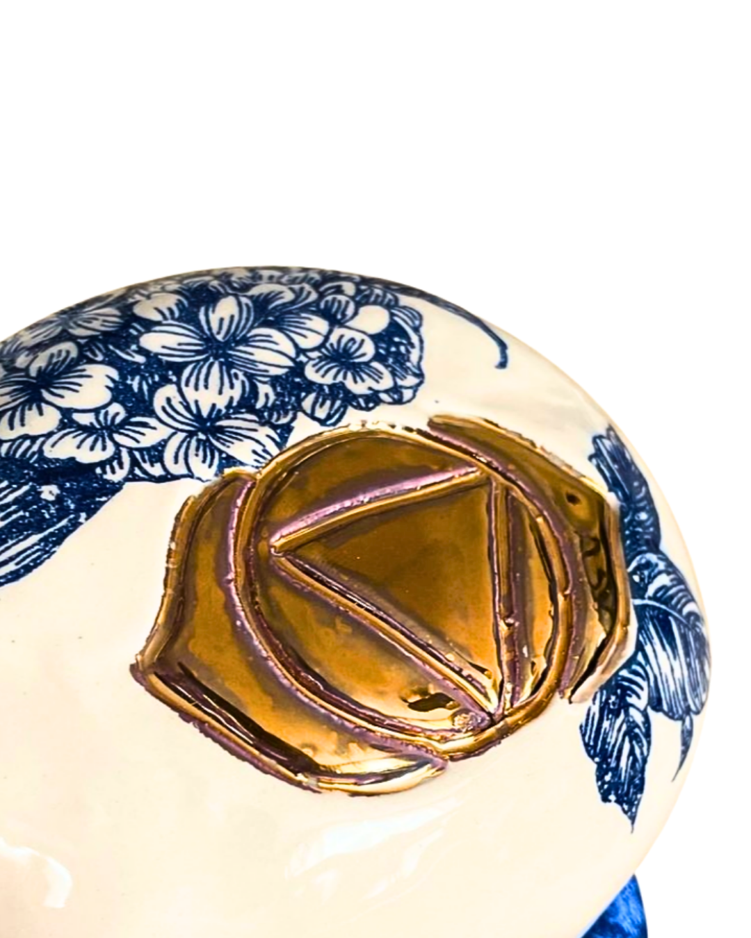 “Third Eye” invites attention to settle and refine into insight. Its generous proportions hold space for quiet focus, while luminous surfaces echo the mind’s clear field. Gold accents suggest flashes of understanding rising through stillness. Through this piece, seeing becomes a practice of presence rather than effort.