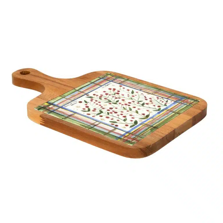 Xmas Holly Flower ve Plaid Pattern Handmade Ceramic And Wooden Cheese Board
